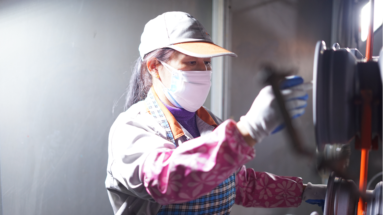 “剛開始進(jìn)入崗位的時(shí)候,還是有些不太適應(yīng),只能強(qiáng)迫自己融入團(tuán)隊(duì),不斷提升自己技能,才能做好這個(gè)崗位。我在打磨產(chǎn)品的過程當(dāng)中,也慢慢發(fā)現(xiàn)只有精益求精打磨出來的產(chǎn)品才能夠使下一道工序減少不良的產(chǎn)生,也給其他工序帶來一定的幫助,自己也感到很快樂。特別是在工作時(shí)幫助他人不斷提高工作質(zhì)量,不斷專研打磨技巧,怎么樣用最快捷最方便的打磨技巧打磨產(chǎn)品,感覺到自己的進(jìn)步,于是慢慢的就喜歡上這份工作。”這是吳愛芳這份工作的簡(jiǎn)單總結(jié)。